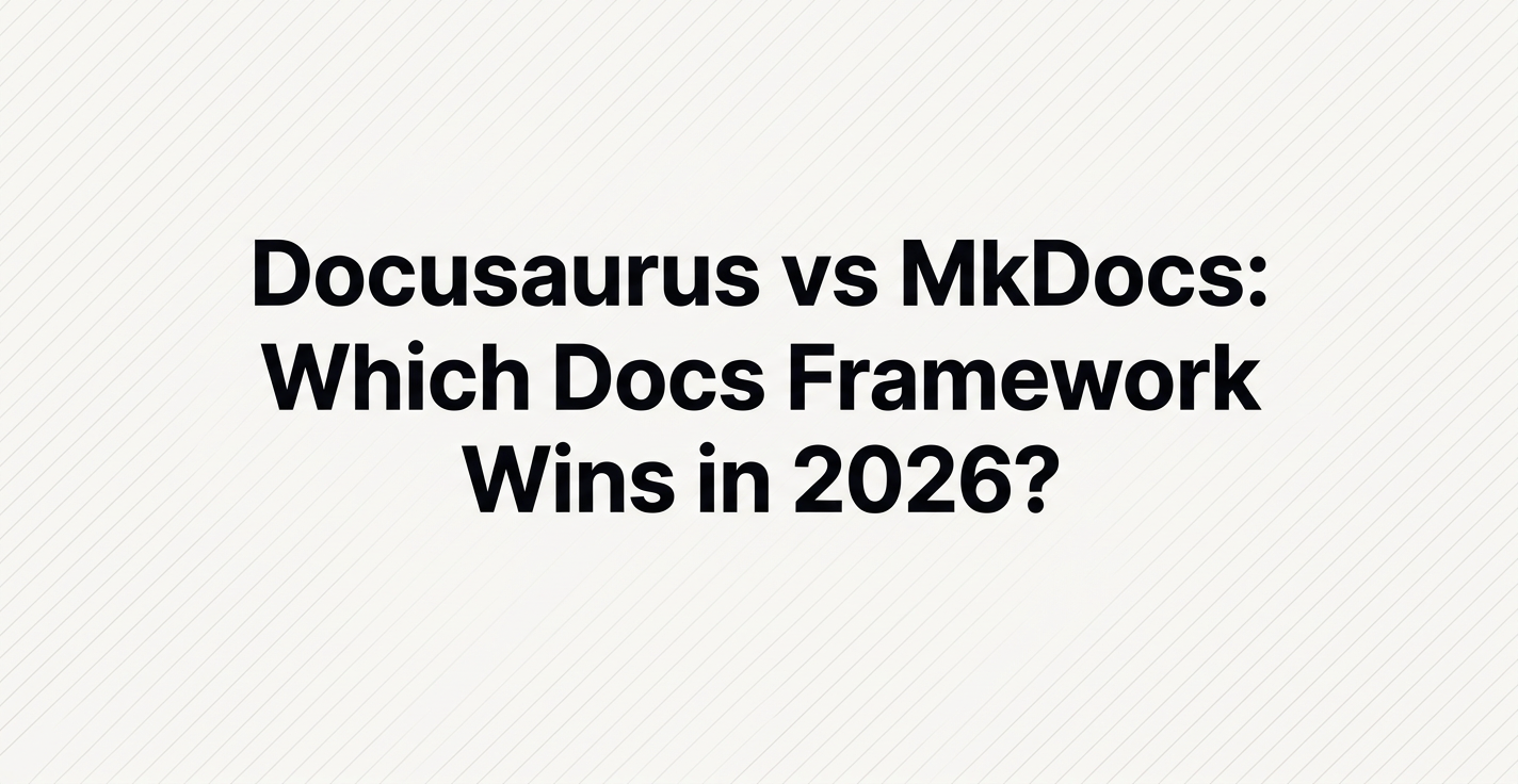 This guide compares the two frameworks head to head across setup, theming, plugins, search, deployment, performance, and community. It also covers a third path most teams discover too late: skipping both frameworks entirely and using an AI-generated docs platform that removes the React, Python, and CI/CD work from your plate.