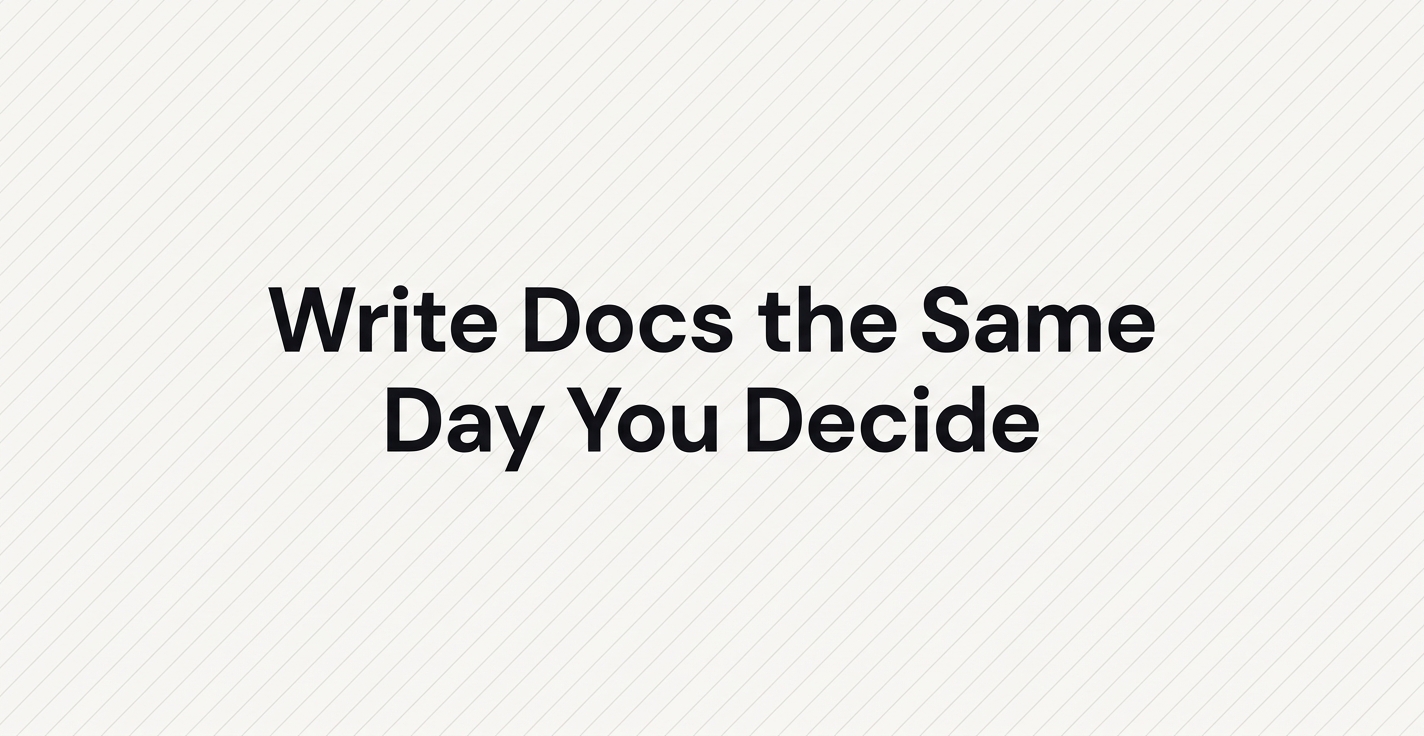 The fix I keep coming back to is simple, and I call it decision-day docs: when a remote team decides something, the doc gets written the same day, by whoever made the decision, in the same hour if possible. Not in a sprint-end retro. Not by a technical writer on Friday. Same day, or the decision doesn't count as made.