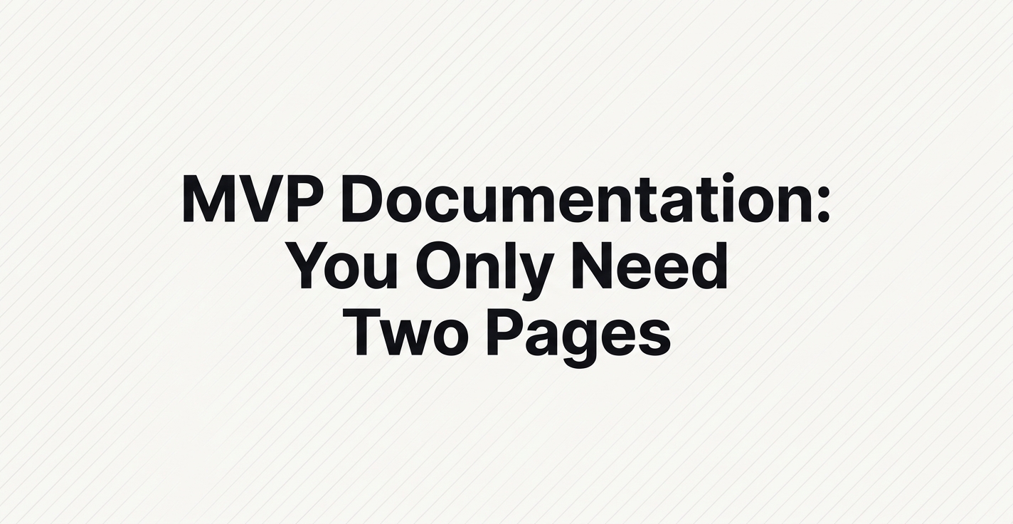 You don't need a full API reference, a knowledge base, and a help center to launch an MVP. You need two pages. A getting-started page and a what-is-this page. That's it. Everything else is scope creep dressed up as professionalism, and it's the reason so many founders spend a week on docs nobody reads before they've proved the product works.