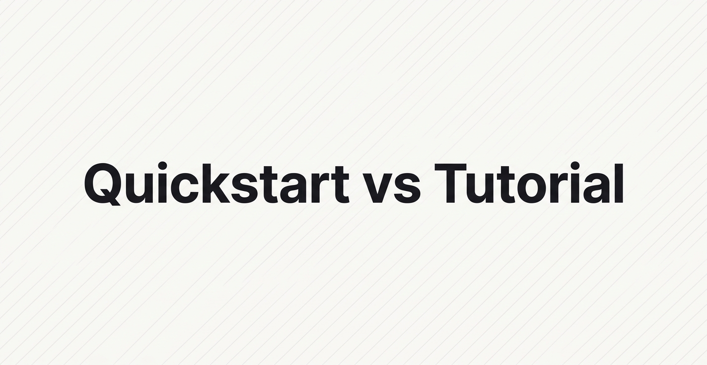 The two formats look similar on the surface. Both walk a reader through a working example. Both live near the top of the sidebar. Both get called "the onboarding docs" in Slack. But they serve different readers at different moments, and confusing them costs you signups. A good quickstart is, honestly, worth more than a great tutorial for an early-stage product. You can always add the tutorial later. You cannot un-bore a reader who bounced in minute two of a forty-minute walkthrough.