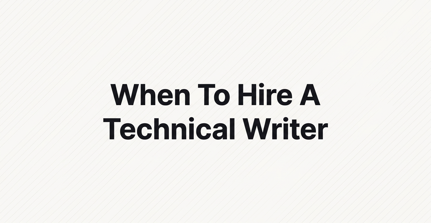 The trigger I watch for now is what I call the docs-debt tipping point: the week your support queue shows the same three questions five times, your sales team starts answering those same questions in demos, and your product has stopped changing shape weekly. Until all three of those are true, a full-time writer is a luxury hire solving a problem you don't have yet.